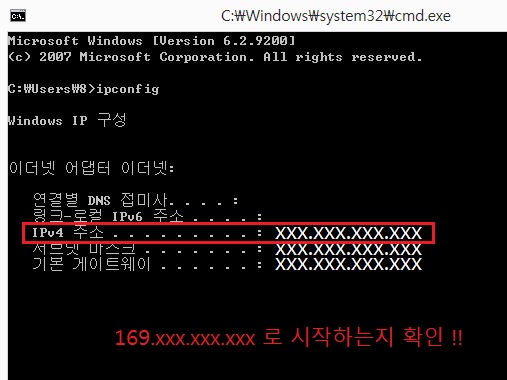 ip : 169 - 인터넷 회사에 연락해서 확인요청을 해야합니다.